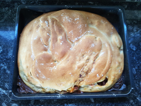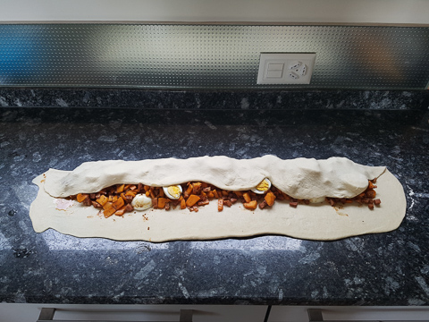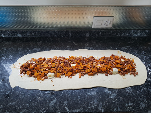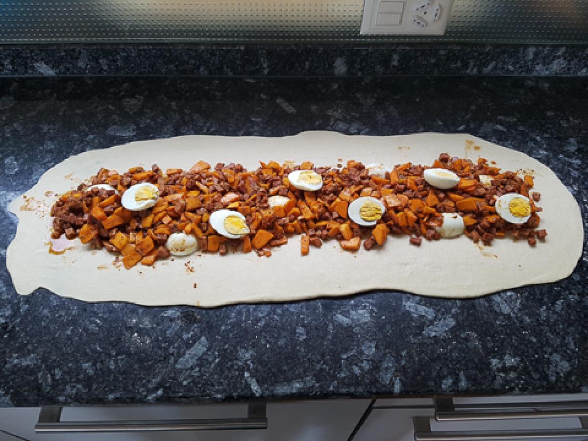 mazi.ch/ Rezepte/ Brot/ Brotkranz Gefüllt/ Brotkranz Gefüllt 1 min Inhaltsverzeichnis Zutaten Ablauf Inhaltsverzeichnis Zutaten Ablauf Zutaten # 650g Rollschinkli 6 Eier 10 Min. gekocht 2 TL Salz Kürbis mit Kräuter, Paprika, Pfeffer würzen Ablauf #
