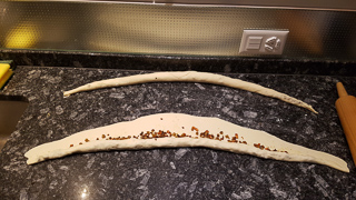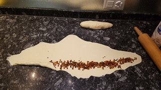 - Füllung im Teig einrollen