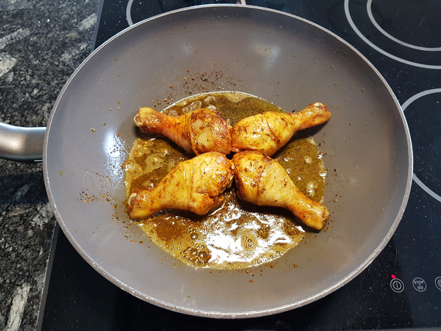 4 Poulet Schlegel gut anbraten, ca. 6 Min.